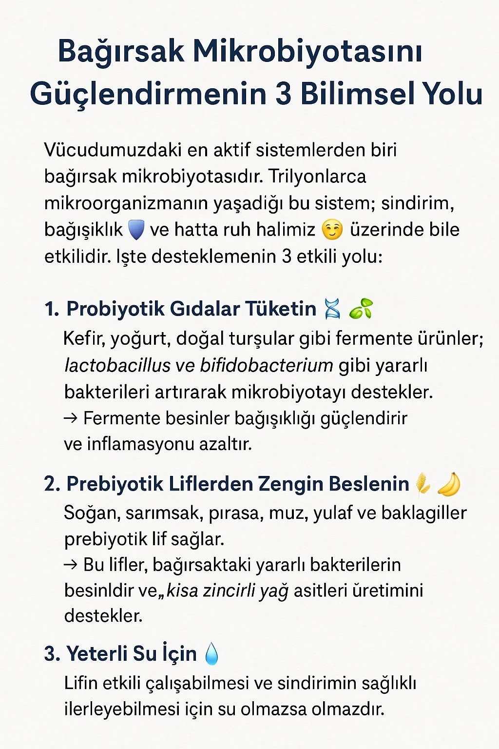 "Sağlıklı bağırsak = Güçlü bağışıklık + Mutlu beyin! Bu 3 adımı günlük rutine ekleyerek mikrobiyotanızı koruyun." 💚