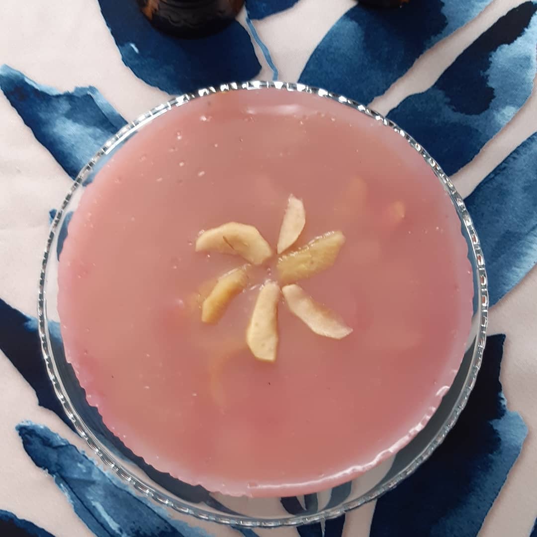 1 su bardağı Şeker çırpıyoruz homojen hale gelen pudingi elma suyuna katıp devamlı telle çırparak koyu kıvama gelecek güzel bir jöle hazırlıyoruz.