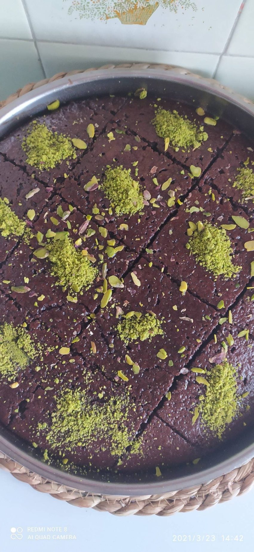 Fırının ayarı en fazla 90/100 derece olsun. Yavaş yavaş içini çeke çeke pişsin ve en son kek soğumuş, sos sıcak halde olsun ve keki dilimler haline getirelim.